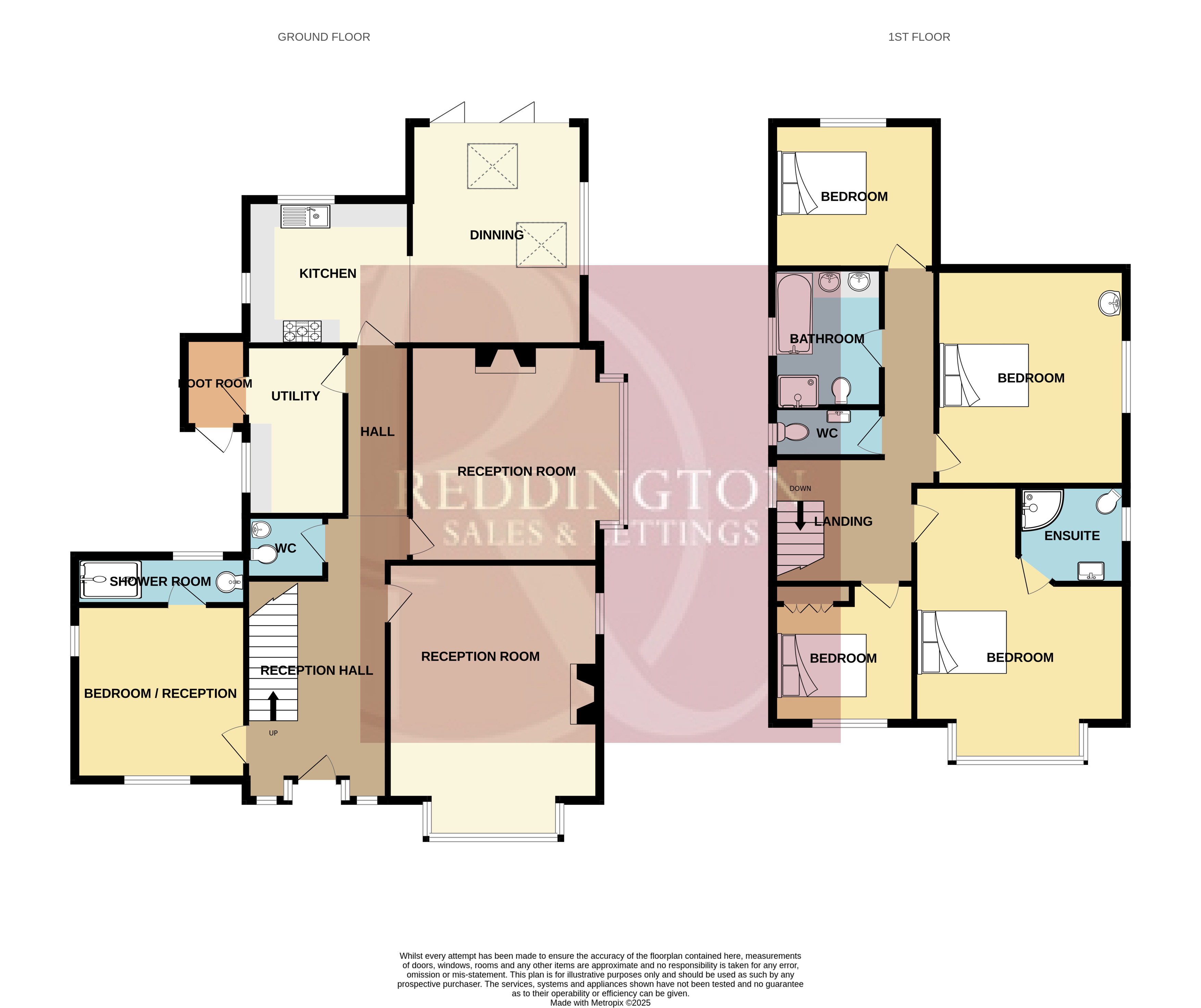 This beautifully renovated Art Deco home masterfully combines 1930s elegance with contemporary comfort, offering a rare blend of period character and modern convenience. Sympathetically restored to highlight its original features—including bespoke replica double-glazed windows, parquet flooring, and exposed brick fireplaces—the property also benefits from a full rewire and a modern gas central heating system installed just three years ago. The ground floor boasts two charming reception rooms, a stunning open-plan dining kitchen with bi-fold doors to the landscaped garden, a spacious utility room, and a versatile guest bedroom/study with en-suite. Upstairs, four generous bedrooms include a luxurious principal suite with en-suite, complemented by a stylish family bathroom and separate WC. Externally, the home sits on a generous corner plot with low-maintenance gardens, multiple seating areas, and a detached double garage with power and electric doors. Perfect for those who appreciate timeless design and modern living in equal measure.